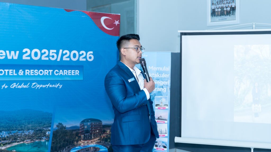Sesi Final Interview ini menjadi tahapan penting dalam proses rekrutmen, di mana para kandidat berkesempatan menunjukkan kompetensi secara langsung kepada perwakilan Limak Lara Hotel. Penilaian dilakukan berdasarkan sikap profesional, kemampuan komunikasi, serta kesiapan kandidat dalam memenuhi standar kerja hotel internasional.
